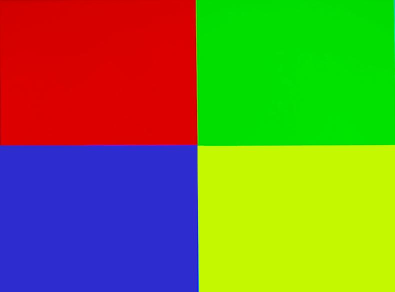 在256位色階測試中,為了將投影機在色彩方面的表現打到最佳,我們對投影機參數進行了適當調整以呈現最佳的色彩效果。通過測試畫面我們可以到除了最右側白色一列外,其他色位基本都能清晰分辨,表現還是很不錯的。