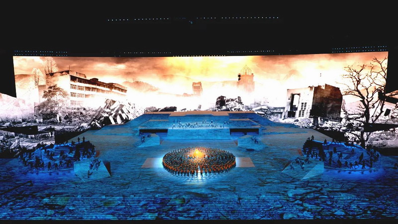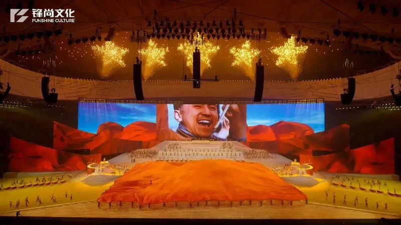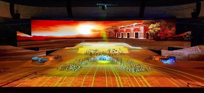 演出現場,150臺巴可UDX-4K40 4萬流明高亮激光投影機組成矩陣,震撼的投影視覺效果與高水準的舞臺表演深度融合,創造出令人嘆為觀止的藝術效果,引領觀眾沉浸于激蕩心胸、大氣磅礴的精彩演出之中。