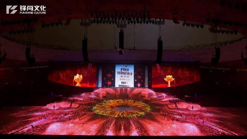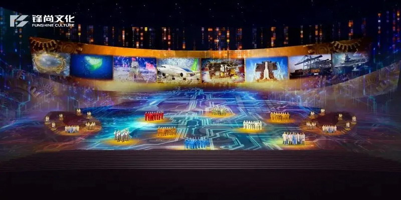 為了與背景LED大屏達到更好的銜接效果,技術團隊根據本次舞美結構,利用面光、逆光及多點位的立體投射方式,使影像與兩側轉臺、大道具無縫貼合,營造出大視覺、大張力的舞臺藝術表現。現場視頻還運用計算機動畫(CG)技術和增強現實(AR)技術,使電視機前的觀眾可以看到現場觀眾看不到的震撼效果。