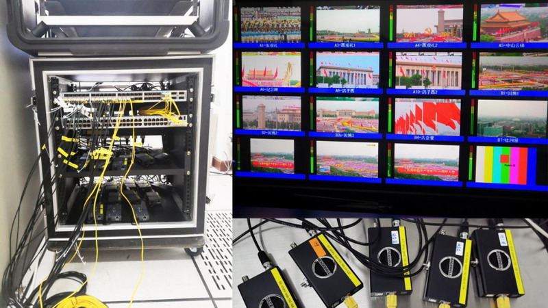 美樂威有幸參與到本次黨慶工作,與現場及全國觀眾和各大媒體一起見證這盛世的繁華。在7月1日慶典活動現場,當和平鴿在晨曦中飛過莊嚴的天安門廣場,部署在廣場附近的若干臺PTZ攝像機正將慶典現場的實況視頻信號接入到美樂威NDI編碼器。美樂威NDI編碼器將攝像機信號轉換為高質量的NDI網絡流后,通過一主一備光纖將慶典的生動盛況傳輸給后方導播室,經由NDI解碼器解碼輸出SDI信號,給到視頻矩陣后,再由切換臺設備進行導播切換,與全國人民一起分享這光榮而神圣的時刻。