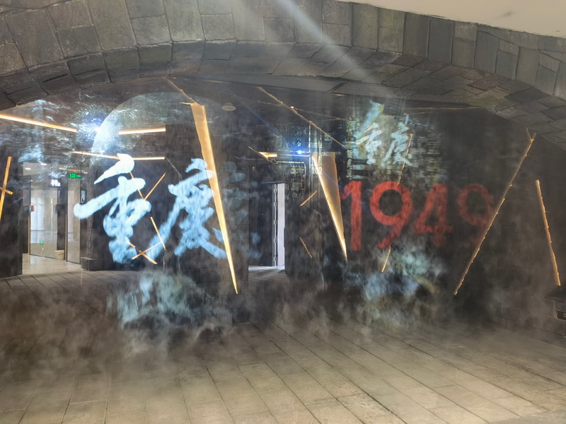 在觀眾入口處,6臺NEC高端激光工程液晶投影機PA703UL+(7000流明、WUXGA分辨率)分別通過霧幕投影和地面投影的方式對實景劇海報內(nèi)容予以創(chuàng)意展現(xiàn),吸引觀眾眼球。其中4臺PA703UL+通過兩兩融合的方式,創(chuàng)新性地打造了兩塊霧屏,帶給觀眾亦真亦幻的立體視覺享受。當觀眾穿越霧屏進場時,仿佛跨越時空,穿越回了那座黎明前的“山城”,去領(lǐng)略那段滿含悲壯而又令人肅然起敬的歷史。PA703UL+擁有REC.2020廣色域,令霧屏的色彩表現(xiàn)絢麗多彩;2500000:1的超高對比度,使得畫面層次感更強烈,視覺感受更具沖擊力和立體感。