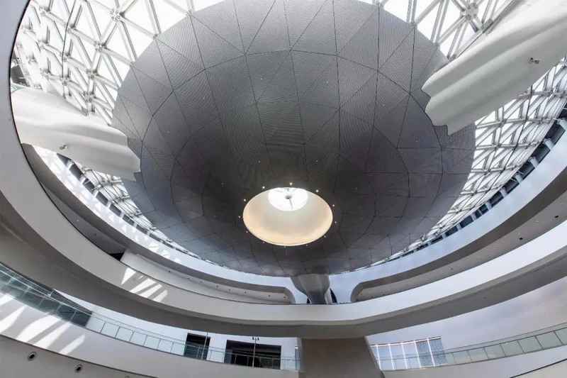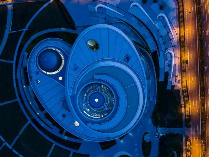 其建筑外形設計獨特,圓洞天窗、球幕影院、倒轉穹頂三個圓形元素構成太陽、地球和月亮的“三體”結構,建筑螺旋形態構成“天體運行軌道”,這不僅展現了天文學概念,而且可以真實追蹤太陽在天空中的運動,使整個建筑成為一件可以表現時間流逝的大型天文儀器。