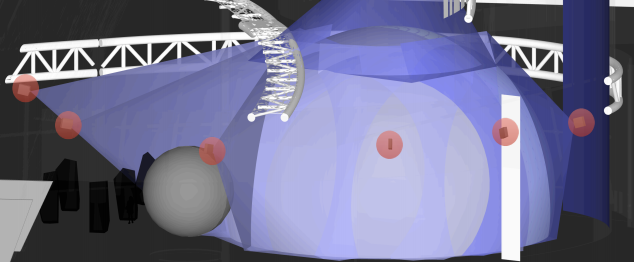考慮到環境光和球體材質對于投影成像的影響,贏康設計了數臺20,600 流明的科視激光投影機完成20米直徑的球體融合投影。