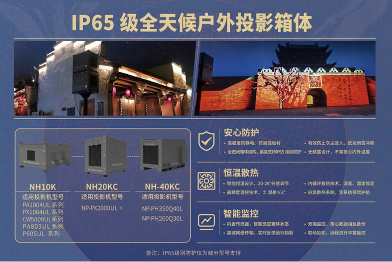2020年,針對投影機戶外的應用環境,NEC將電影院里經過長時間科學驗證的恒溫箱,經過優化改良后,應用到投影機戶外防護箱體上。