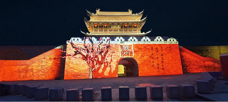 2021年3月~4月,在杭州建德梅城古鎮,以古城墻為幕布的3D沉浸式燈光秀精彩亮相,炫麗的視覺文化盛宴將嚴州文化與現代科技完美融合,給游客帶來震撼的視覺體驗。