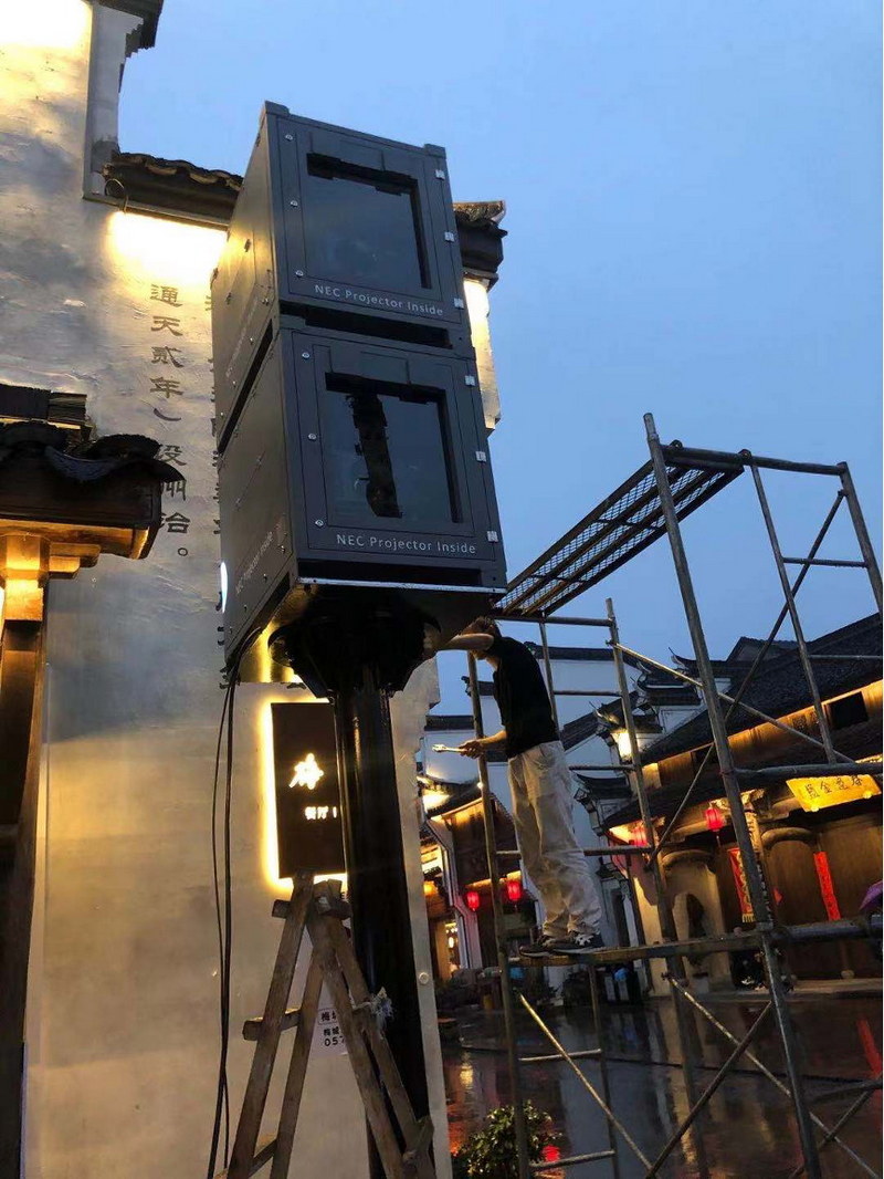 目前,NH系列IP65級全天候戶外投影箱體配合NEC投影機打造了一系列戶外投影秀創新一體化解決方案,并廣泛應用到眾多戶外投影秀項目中,其中杭州建德梅城古鎮澄清門北城墻3D裸眼燈光秀項目就是最新的一例。