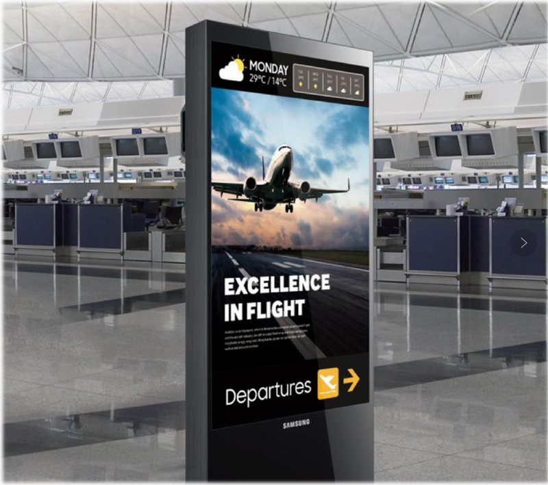 三星商用顯示器將區域內所有顯示終端進行深度融合,依托TIZEN系統和MagicINFO數字標牌廣告機信息發布服務,更簡單高效地對顯示器進行集中遠程管理、實時監控、發布素材等工作,為旅客提供“一體化”解決方案。從停車場開始,三星戶外標牌與LED屏可信賴的防眩光面板,能夠在早中晚不同時間均可獲得較好的視效,為尋找停車或下車點的旅客提供指引;到了自助登機區,三星顯示標牌能夠給旅客指引航空公司柜臺的方向,辦理登機手續;在前往登機口的路上,三星LED拼接屏超高清的4K分辨率,可以帶來栩栩如生的圖像以及清晰分明的畫質,用來展示該城市的歷史文化,幫助乘客淡化旅途的勞累;最后在登機口,三星標識屏還可以為乘客提供最新的航班數據,真正做到了從“走進”到“走出”的一站式整體服務。