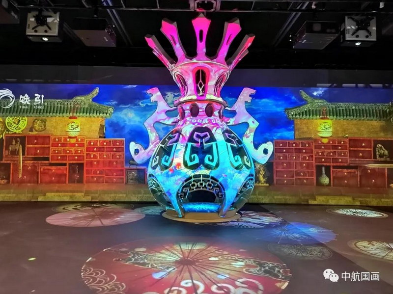 2021年7月21日~23日,InfoComm China 2021正在北京國家會議中心開展,位于M館MA3-01、MA4-01的中航國畫展位成為本屆展會的一大亮點,引發(fā)觀眾競相參觀。摩登古風國畫——“夜貓子集”光影秀被評價為“全場最有看點”的解決方案之一,為游客打開一個光怪陸離的沉浸式體驗空間,按子、丑、寅三時辰描繪了關(guān)于夜貓子集的燈、鬼、船三大市,通過藝術(shù)化夸張?zhí)幚肀憩F(xiàn)漕運鬼市“半夜開張,天明罷市”的人文風貌。