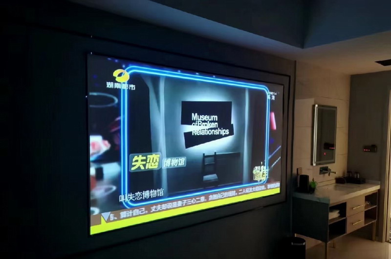 一般的酒店或民宿雖然也能播放影片,但播放設備一般都是普通的平板電視,屏幕尺寸有限,還大多只能播放寬帶直播電視。影院式客房則不同,它需要給住客提供百寸甚至超百寸的超大且清晰的畫面,讓住客仿若置身私人影院;同時,還需要配備豐富多樣的在線資源,讓住客可以隨意點播想看的影片。