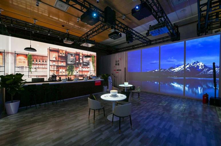 除此之外,現場的咖啡杯也暗藏驚喜,高端單片DLP的典型代表F80系列,立體生動還原咖啡杯中的拉花變化。該系列具有接近3DLP的畫質表現,高分辨率低噪音等特點,使其完美適用于高品質的科技館、博物館、主題公園及虛擬仿真等室內項目中。