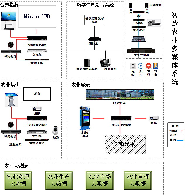 新聞網站、視頻、圖片、資料、農業應用軟件、農業電商、農業直播等海量數據源接入;各種類型信號進行疊加、漫游、開窗顯示。