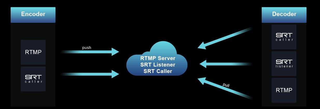 SRT技術能夠在復雜的互聯網環境下實現多地之間安全可靠低延時的網絡視頻傳輸與分發,但是許多老舊編解碼設備不能夠直接支持SRT協議。Magewell Cloud支持RTMP和SRT協議的互相轉換,在提供與更廣泛的設備和軟件的兼容性的同時允許用戶使用SRT的強大功能。