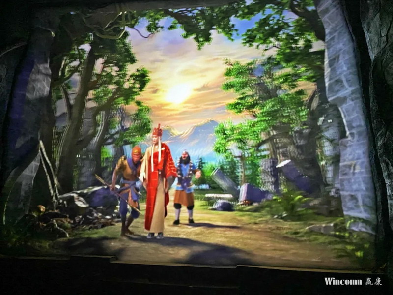 在該項目中,贏康完為造型投影、幻影成像、直幕投影、弧幕投影、紗幕投影等多種投影方案完成了光路設計、設備供應和調試等工作。