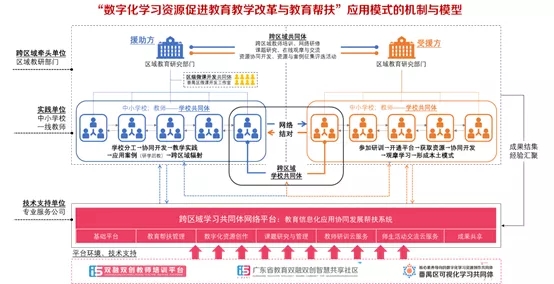 番禺區依托校際共同體、跨區域共同體、技術支持企業等主體,以數字化學習資源建設為突破口,逐步構建起“數字化學習資源促進教育教學改革與教育幫扶”的融合應用模式,實現省內外數字教育資源的“共建、共用、共享、共實踐、共改革”,推動區域教育教學高質量發展。