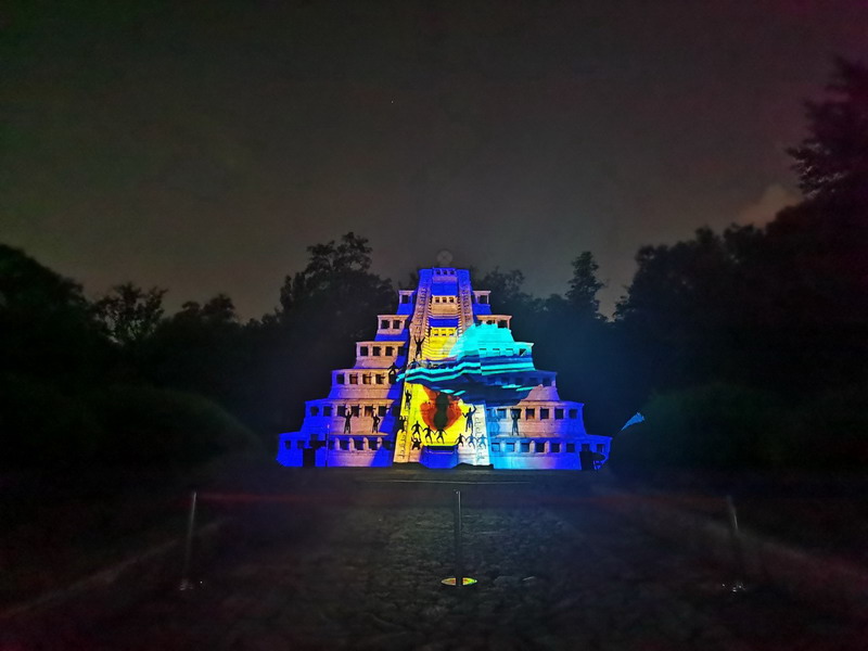 天外來客“再臨”瑪雅,壁龕金字塔中的機關洞開,從中現出一枚古幣……神秘的序幕在光影中拉開,10,000流明的PT-SMZ10KCL松下工程投影機以塔身為卷,繪出光怪陸離的傳奇故事。絢麗魔幻的色彩中,解開天外之謎的密碼正等待著游客的發掘。