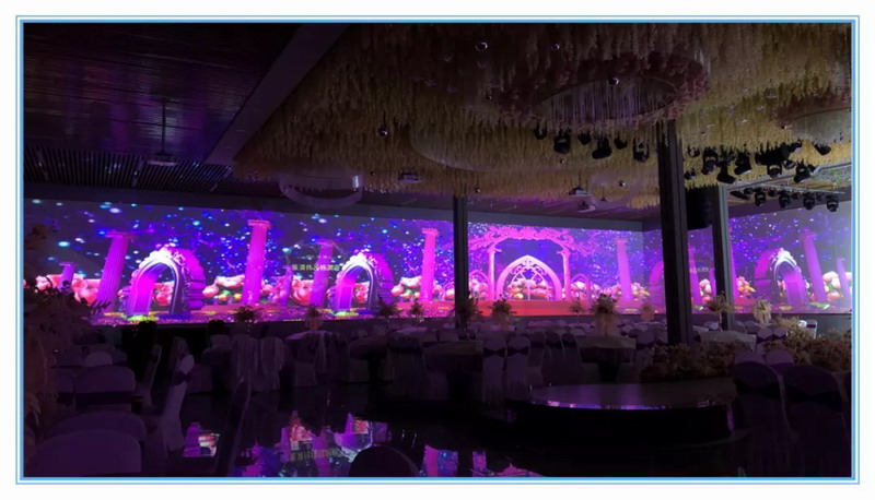 由ROLY8臺RL-6000UT專業工程投影機,12臺專業短焦系列投影機RL-S380U,用拼接融合互動技術打造了一個美輪美奐的婚禮舞臺以及多個精彩的主題應用場景,烘托出現場熠熠生輝,凸顯時尚青春氣息氛圍,讓現場的人過眼難忘。