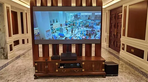 客廳紅木家具裝飾,沉穩氣派。搭配LS500激光電視,凸顯出了現代和古典的融合。