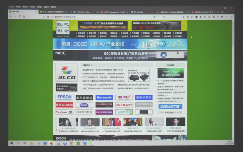 從投影畫面夠明顯的感覺到在標準會議室環(huán)境下,它實現(xiàn)了“無懼強光”的視覺質(zhì)感。測試圖能清晰呈現(xiàn)層次,畫面細膩程度令人滿意。