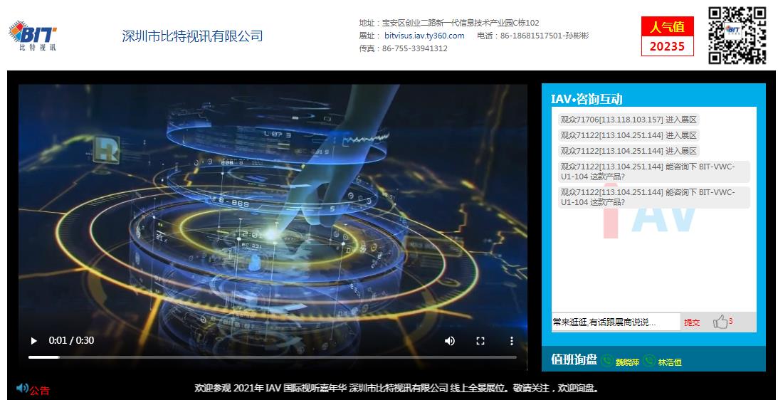 2021年9月1日為期二個月的IAV國際視聽嘉年華線上展會全面啟動,IAV展會是由中國視聽網,中國投影網,音響網,數字標牌網,舞臺燈光網,LED大屏網,廣告設備網,教育裝備網,視聽中國等行業權威媒體,攜手視聽企業共同打造視聽行業最大的線上全景展。IAV是在2020年疫情危機之下,利用互聯網大數據創新誕生。不但吸引眾多國內外知名聲光訊及周邊產品品牌廠商,代理商,集成商,工程商參觀。而且上百萬的IP流量讓企業成功C道出鏡。個性化視覺效果,持久性展示力度最終成功的打造永不落幕展,商業價值凸顯。