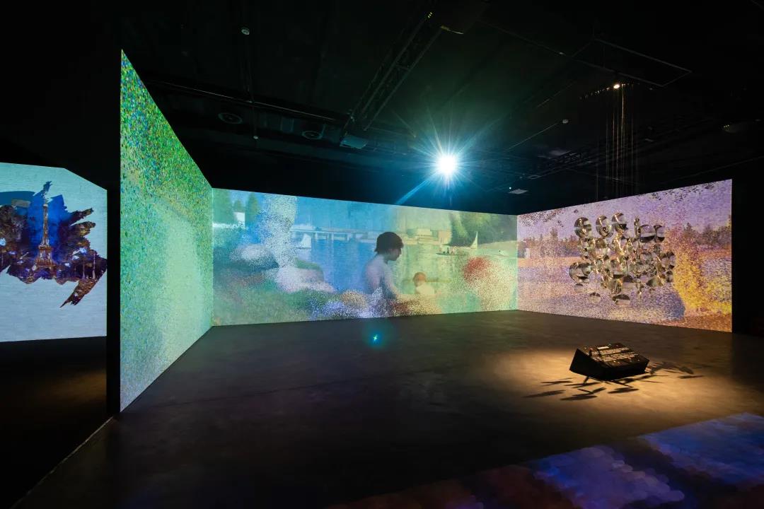 曲面屏及地面重構尚·弗朗索瓦·米勒《祈禱》、喬治·修拉《大碗島星期天的下午》