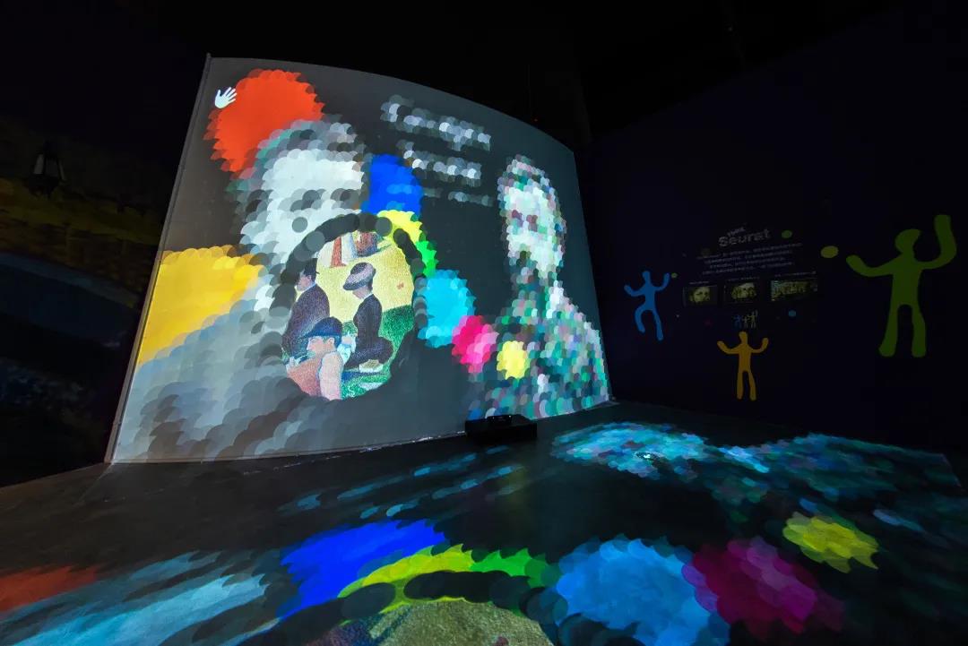 ArTech Hub藝術磁場與我們熟悉的傳統藝術館截然不同。作品被放大到超常規的尺度進行各種形態的動態展示,同時與空間、道具、觀眾進行更親密的互動。投影技術的加持,使得對展品的解構、重構得以成為可能。在這里,投影技術與藝術的巧妙融合為觀眾帶來嶄新的觀賞體驗。