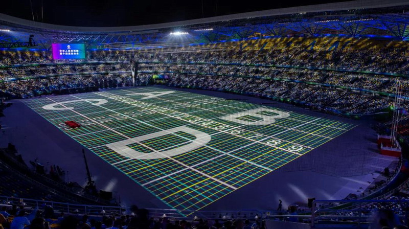 此次是繼第十三屆全運會開幕式演出后,松下系統工程投影機再次為全運會提供服務,可見品質表現受到完全信賴。松下30000流明與50000流明激光光源系統工程投影機,憑借明亮畫面與強大畫質效果,將璀璨的光影長卷在體育場地面鋪開,形成一個多媒體立體空間。