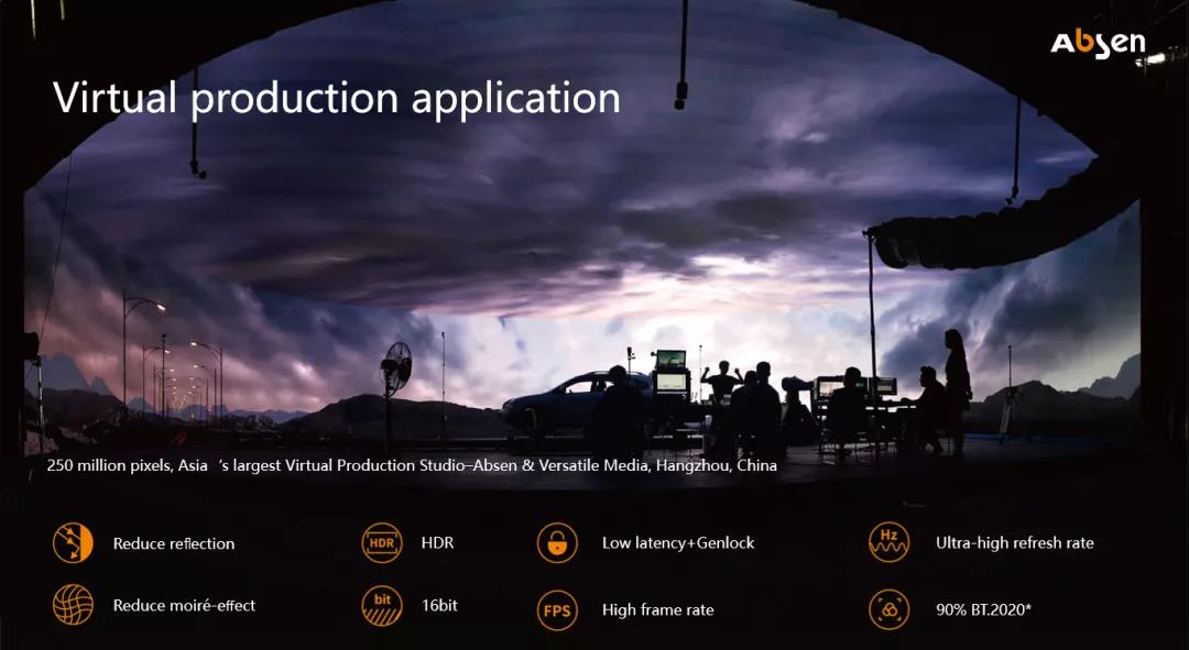 作為近年來備受關注的新興應用,在現階段的影視拍攝、演播室等場景中,LED虛擬攝影棚憑借逼真的顯示畫面、卓越的視覺效果、沉浸式的體驗帶來令人驚嘆的專業拍攝效果。發布會現場,艾比森LED虛擬電影攝影棚解決方案精彩亮相。憑借可靠的產品、優質的服務和領先的市場地位,艾比森致力于推動LED虛擬電影攝影棚的應用,為影視文化產業強勢賦能。