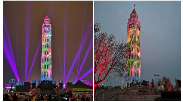 鶴壁鐘樓的周圍安裝了二十臺科視Christie DWU2022-HS 激光投影機,可用華麗的畫面將整座建筑照亮