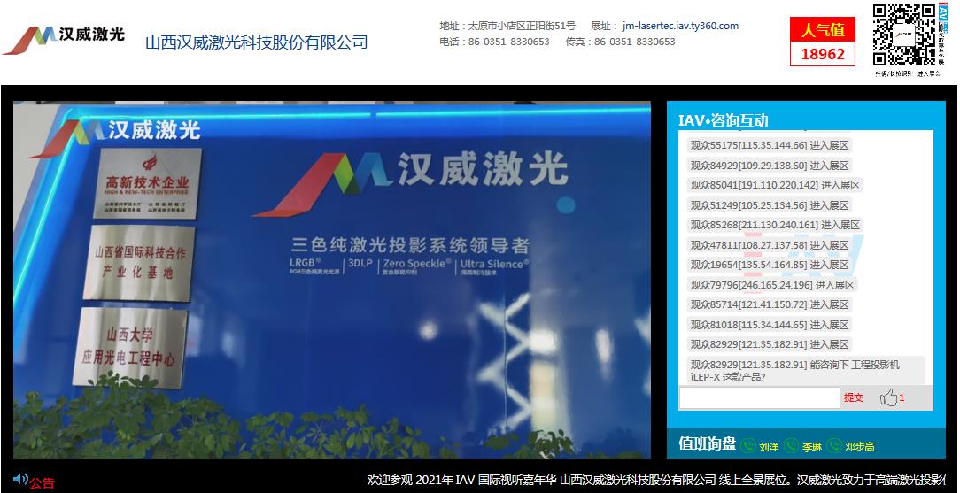 山西漢威激光科技股份有限公司作為行業沉淀多年的品牌,攜旗下多款工程投影機、影院放映機及解決方案亮相本屆IAV國際視聽嘉年華線上展,為渠道及用戶呈上精彩的視覺盛宴。