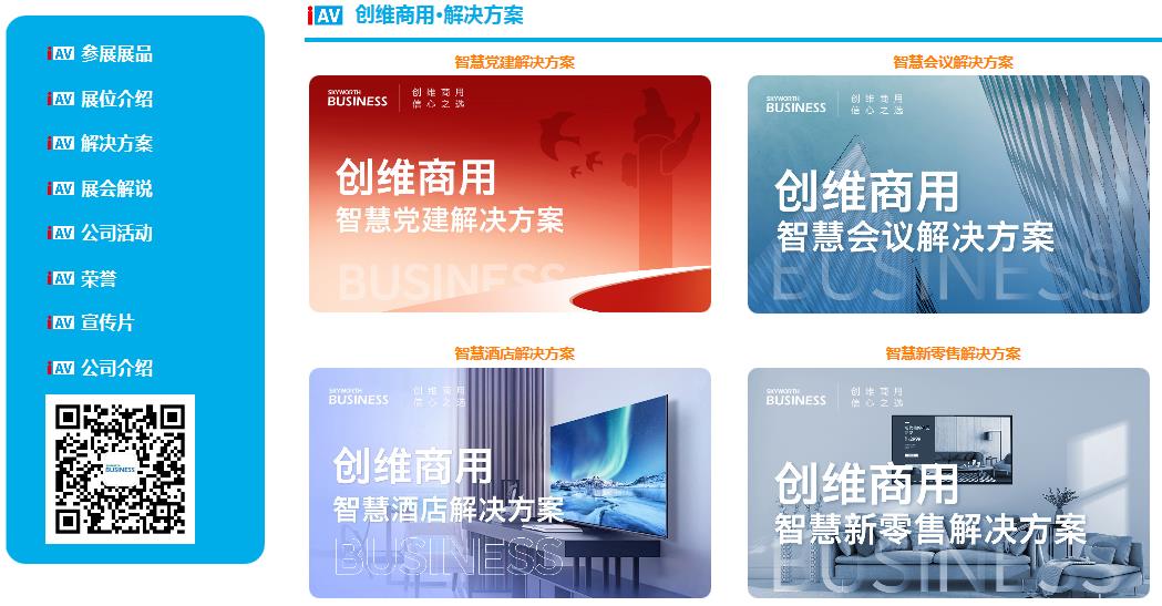 創維商用 攜旗下多款高端智慧大屏產品及智慧解決方案亮相本屆IAV國際視聽嘉年華線上展,為渠道及用戶呈上精彩的視覺盛宴。