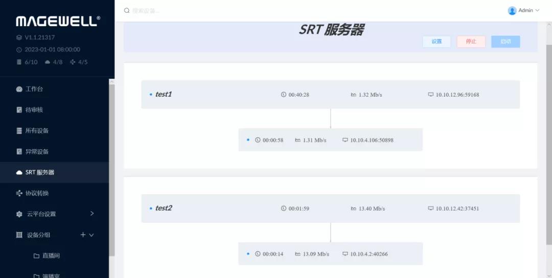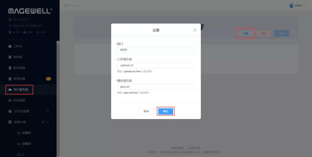 1.登錄Magewell Cloud的Web GUI,進入“SRT