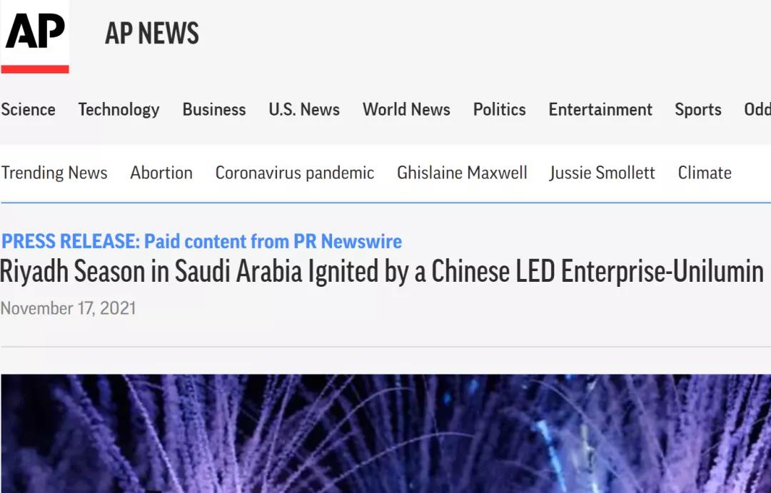 ▲美聯社報道沙特Riyadh Season(由中國洲明科技出品)