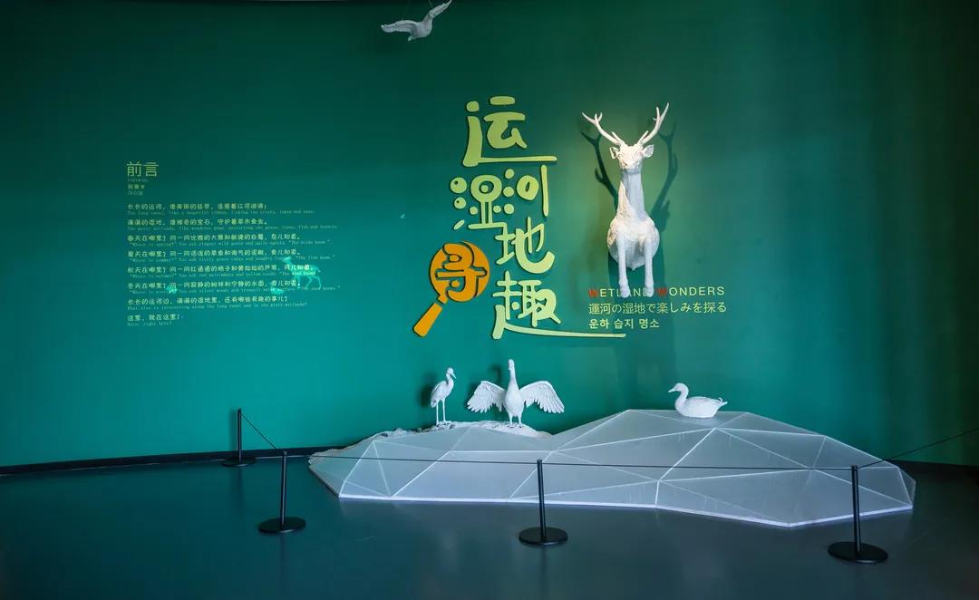 發(fā)現(xiàn)了嗎?背景有小巧思哦~空間以大自然的綠色為主色調(diào),烘托主題,融入運河各類生態(tài)元素,直觀地呈現(xiàn)運河濕地和諧共榮的生態(tài)面貌。
