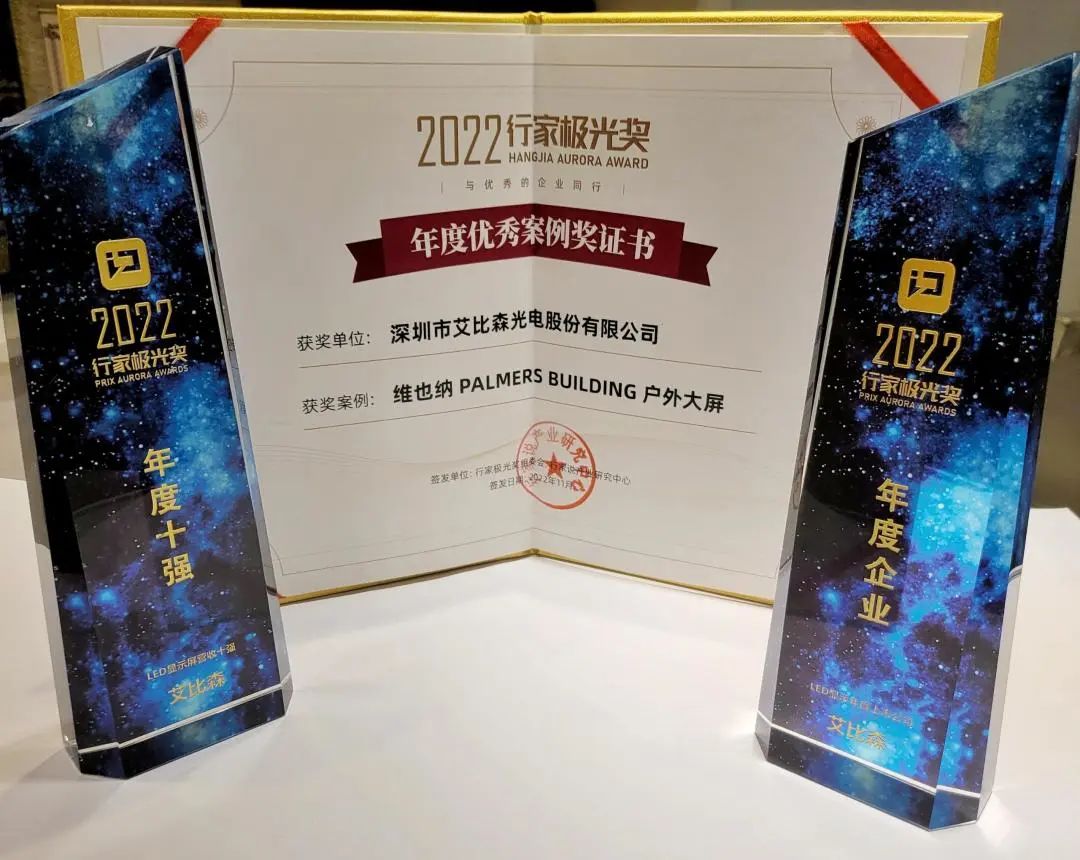 11月18日,一年一度的行家說年會暨行家極光獎頒獎典禮在深圳隆重舉行,現場揭曉了2022行家極光獎各大獎項的得主。艾比森榮獲“LED 顯示產業年度上市公司”、“LED 顯示屏營收十強”、“年度優秀案例獎”三項大獎,贏得了行業內外的一致認可和高度贊揚。