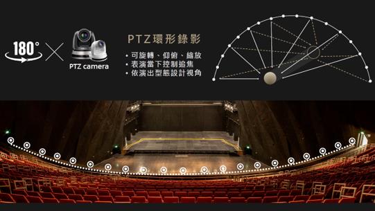 我們在北流的觀眾席二樓安裝了16臺攝影機,透過NDI的影音傳輸技術讓這16個影像以同步的狀態,送入環形多視角錄影系統,處理成一個環形的攝影,解決一些視線死角的問題。我們使用的是Lumens公司研制的NDI PTZ攝像機,經由我們研發的環形多視角錄影系統做到舞臺上的聚焦、變焦、光圈控制等攝像機群控。該方案實現了以下技術與服務的革命: