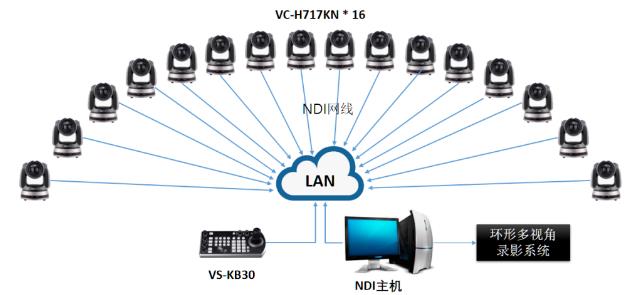 利用NDI技術,讓16路畫面以同步的狀態匯成一個環形的攝影,簡化帶寬及接線問題
