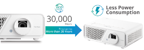 Y5擁有非凡的30000小時光源壽命,每天使用 4小時,使用時長可超過20年,相較于傳統燈泡及激光投影機,功耗更低,更加省電,節能環保;