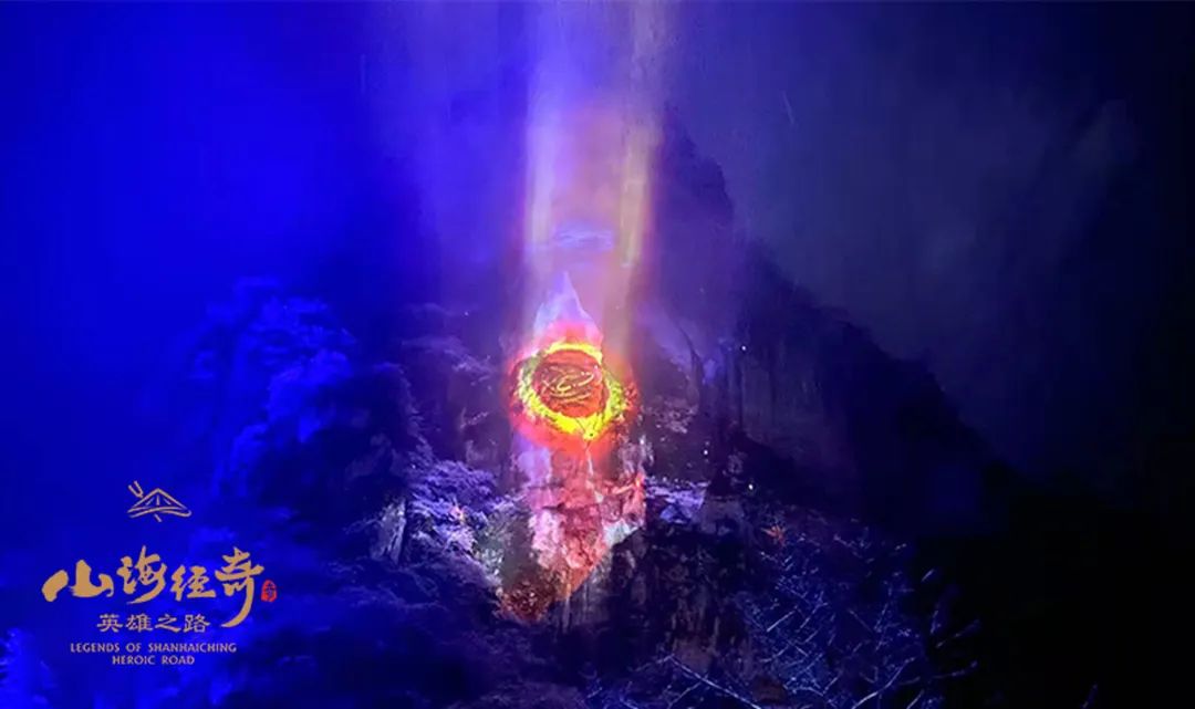 《山海經奇·英雄之路》是一個以央視紀錄片《山海經奇》IP系列為主題的沉浸式夜游項目,由浙江沉浸文化發展有限公司總策劃設計并投資,總投資約1.7億元,位于浙江國家級風景名勝區穿巖十九峰。