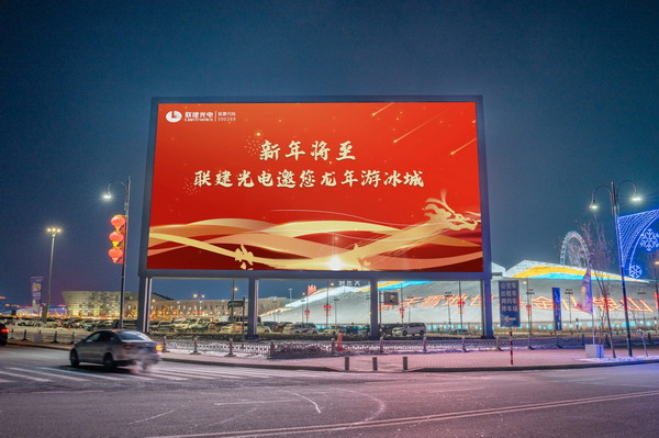 不僅是大舞臺屏,聯建光電為冰雪大世界打造的每一塊大屏都需要在嚴苛的戶外環境下保證良好的運行及顯示效果。