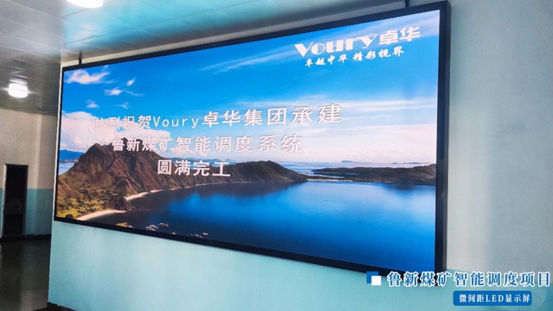 當前,信息化礦井建設(shè)已經(jīng)成為煤礦業(yè)的重要任務(wù),人們對信息的獲取百分之九十以上是來自于眼睛,因此顯示設(shè)備一直都是傳遞信息的主要方式。根據(jù)《煤礦安全規(guī)程》(2022版)“生產(chǎn)礦井同一水平行駛7臺及以上機車時,應(yīng)當設(shè)置機車運輸監(jiān)控系統(tǒng)。”為響應(yīng)“智能化示范煤礦”的建設(shè)要求,打造高度智能化調(diào)度指揮系統(tǒng)。近日,由Voury卓華為魯新煤礦打造的LED超高清顯示系統(tǒng)正式投入使用。