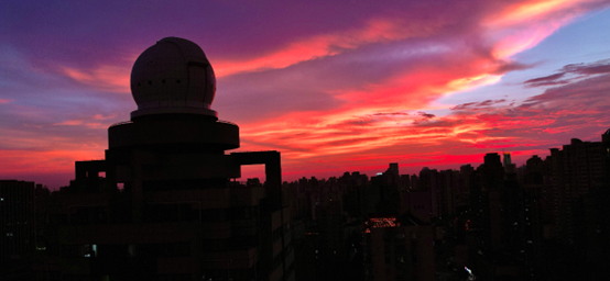 在中科院上海天文臺(tái)徐家匯園區(qū)主樓天文大廈的樓頂,有一座圓形建筑引人矚目,外觀看起來(lái)像是人們?cè)诋媰?cè)與電影中見過(guò)的觀天望遠(yuǎn)鏡。本次項(xiàng)目設(shè)計(jì)搭建團(tuán)隊(duì)Merak Cosmos的負(fù)責(zé)人朱達(dá)一在這里熱情接待了我們,他介紹到:“很多人路過(guò)天文大廈時(shí)都會(huì)好奇樓頂?shù)那蛐谓ㄖ杏惺裁矗鋵?shí)這里曾經(jīng)有望遠(yuǎn)鏡,不過(guò)二十多年前就已搬走,之后就空置下來(lái)。從2022年到現(xiàn)在,我們?cè)谶@個(gè)空間中安裝了先進(jìn)的混合天象系統(tǒng)。”