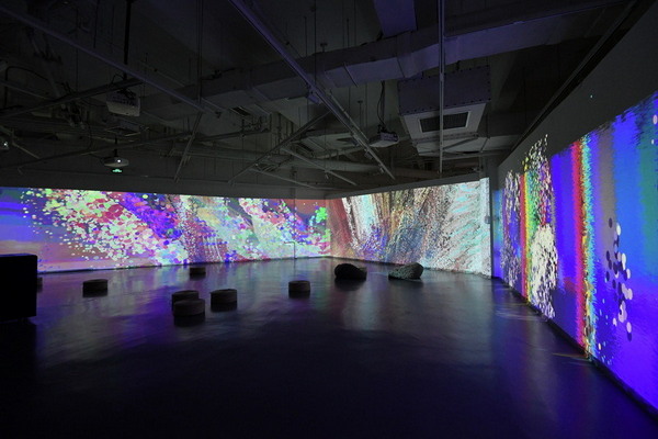 展項(xiàng)使用5臺(tái)7000流明亮度的Vivitek(麗訊) DU4871Z激光投影機(jī),通過(guò)三臺(tái)投影機(jī)融合,兩臺(tái)拼接的方式以專(zhuān)業(yè)的工程使用安裝設(shè)計(jì)規(guī)格,穩(wěn)定的品質(zhì)、超高的亮度、真實(shí)的色彩還原度完美呈現(xiàn)藝術(shù)家們的創(chuàng)作。藝術(shù)與創(chuàng)想、數(shù)字藝術(shù)與自然元素,相互分離又相互交融,虛實(shí)結(jié)合又變幻莫測(cè)。