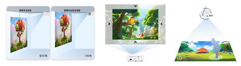 靈活安裝|傳統汞燈投影儀往往有仰角,導致畫面無法完全貼頂影響美觀。搭載新光源的明基LW600ST不僅做到了完全貼頂的0仰角設計,而且還能在不影響畫質的前提下進行一定程度上的數字縮放,甚至支持數字鏡頭位移,可靈活呈現出滿滿一整面墻的互動場景。