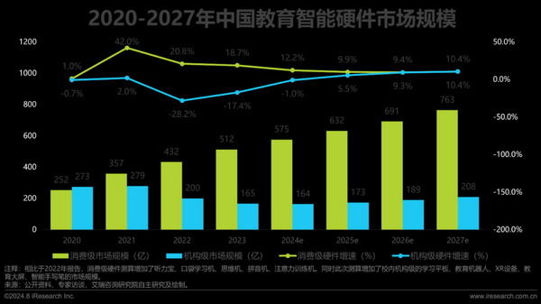 校外消費級575億,校內機構級164億,預計2027年共計近千億元
