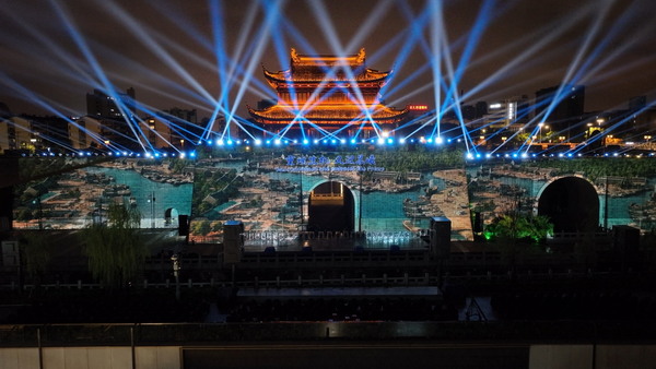 暮色四合,女王系列通過多臺融合疊加的形式,以璀璨光影妝點著巍峨壯麗的古城墻。水韻江南、千秋淮揚……伴隨著一段磅礴開合的大運河文化宣傳片,第六屆運博會的精彩序幕緩緩揭開,生動展現大運河的歷史變遷與人文風貌,記錄下因“河”而生、因“運”而興的美好生活。