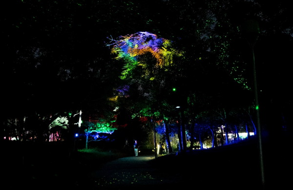 婆娑樹影下“神獸”閃現,索尼VPL-F1006ZL在枝繁葉茂的大樹上投影出逼真色彩。