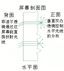 | dnp新廣角屏幕是光學(xué)單層屏幕,帶有2個有效透鏡表面。靠投影機(jī)一側(cè)的高精度菲涅爾透鏡有聚光鏡的功能:匯聚投影光線并將其延直角傳送至屏幕。屏幕上的漫射物質(zhì)控制垂直光線的分布;屏幕正面良好的點(diǎn)距雙凸透鏡可將高分辨率圖像分布在180°水平視覺范圍上。 |