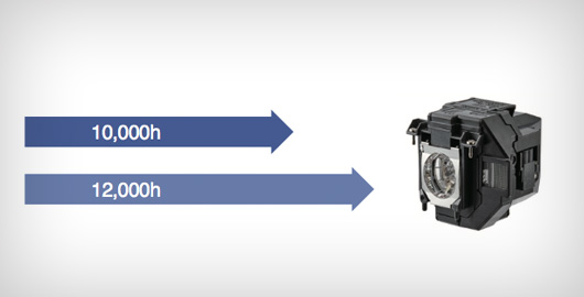 在環保模式下,燈泡壽命比前代提高了2,000小時,最長達12,000 *3小時。假如按每個工作日(按一年250個工作日計算)使用8小時/ 環保模式下投影,預計可使用長達6年 *4,使您無需擔心耗材成本, 使用更無憂。