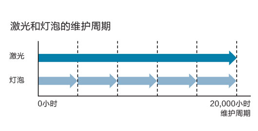 愛普生研發的激光光源能夠帶來長達20,000小時長壽命 *1 。激光光束來自多個激光二極管,即使一個二極管壞掉,圖像也不會受到影響,這就免除了在重要演示中投影機光源可能會突然熄滅的風險。