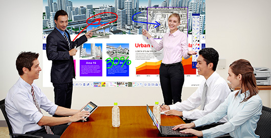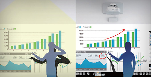 超短距離投影 即使站在屏幕正前方,投影機光線也不會影響到眼睛,使您站在屏幕前方演示感覺更為舒適。